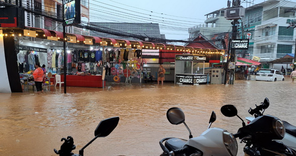 昨日夕方に降った大雨により、カタ地区でも道路の冠水や浸水被害が発生しました。