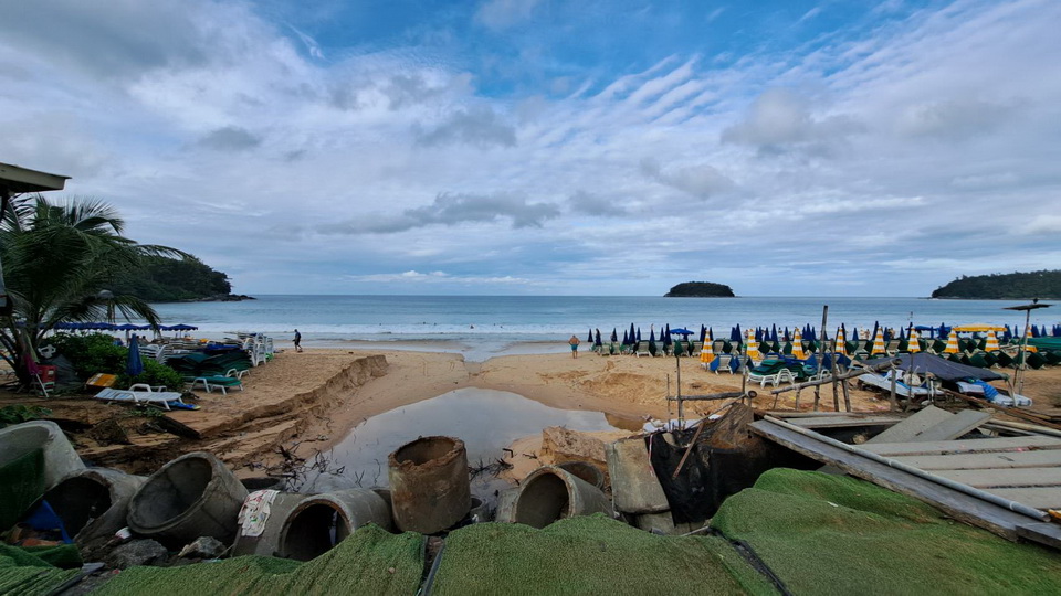 一夜が明けカタビーチに行くと、一年前の8月に発生した豪雨で、カタビーチが決壊しましたが、昨日の大雨により修復した箇所が再び決壊していました。